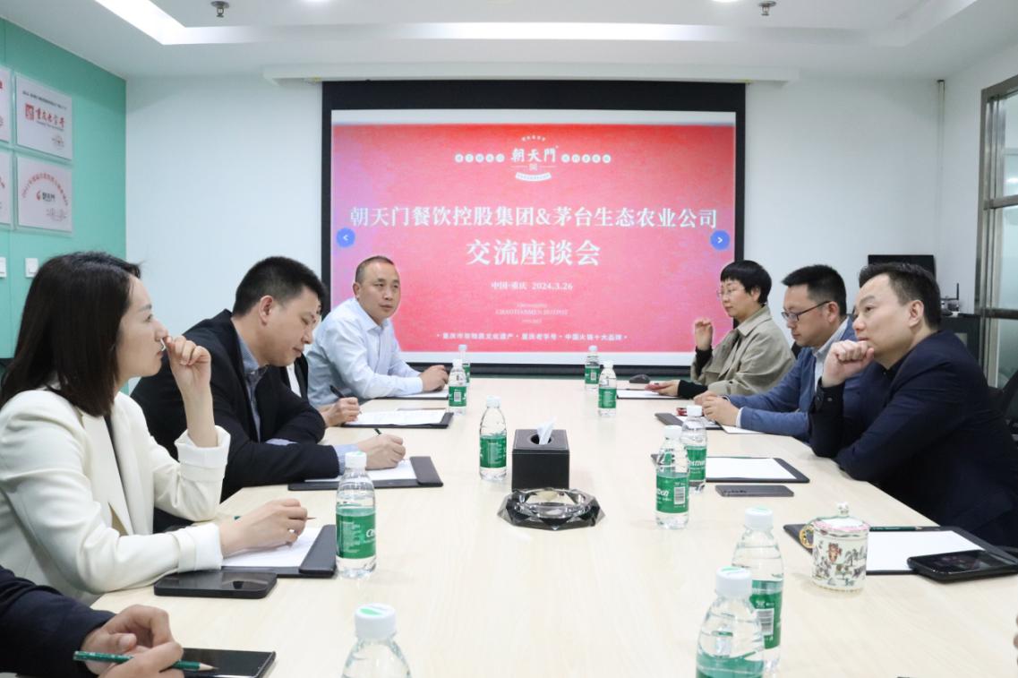 今日(3月26日)下午,朝天門餐飲控股集團(tuán)與茅臺生態(tài)農(nóng)業(yè)公司,在朝天門餐飲控股集團(tuán)總部,進(jìn)行交流座談會,朝天門餐飲控股集團(tuán)董事長王普,貴州茅臺(集團(tuán))生態(tài)農(nóng)業(yè)產(chǎn)業(yè)發(fā)展有限公司黨委委員、副總經(jīng)理杜艷等領(lǐng)導(dǎo)出席了交流座談會。