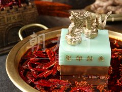 重慶火鍋起源於清末民初的朝天門碼頭,碼頭船工縴夫為飽腹驅寒,將達官貴人棄之不用的牛下水與辣椒花椒混煮,這便是重慶火鍋的起源。朝天門也是重慶人文發源地,據記載,古代官員來渝或皇帝有聖旨、詔諭到重慶,都會在朝天門碼頭靠岸,地方官員到此迎接,這正是朝天門名字的由來。朝天門火鍋作為重慶火鍋的傳承者,因此據重慶火鍋的起源和朝天門的歷史,在店內打造「璽印」文化,通過「進門接聖旨,落座見玉璽」的場景體驗,來表達重慶這座城市的獨特風韻。